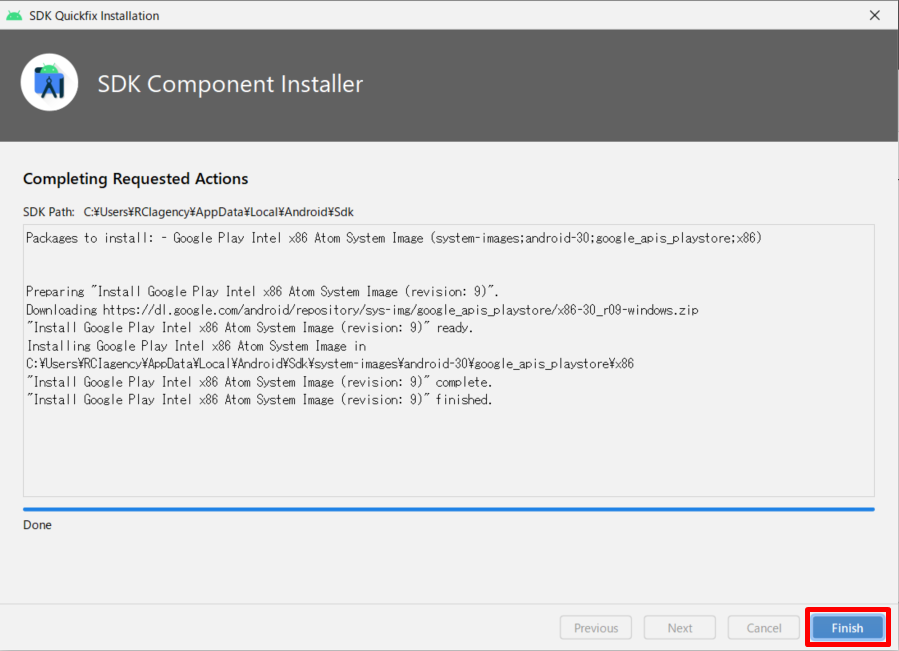 【Finish】클릭 하면 다운로드가 완료된 것이다