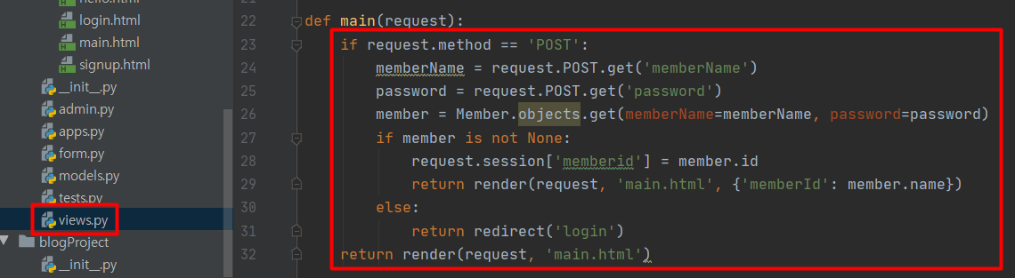 if member is not None: 은 SELECT했을때 member가 있냐 없냐를 판단하여 없을경우는 다시 login 페이지를 부르고