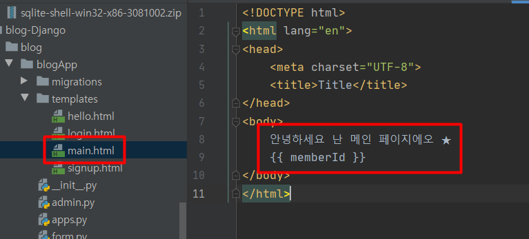 member 오브젝트가 있다면 세션에 유니크한 id를 담고, main.html를 부르며, memberId에 값을 넣어준다