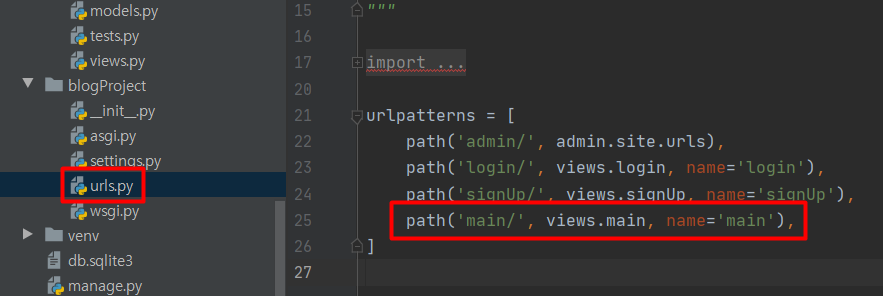 그리고 main Page로 갈 수 있도록 urls.py에서 path를 정해준다