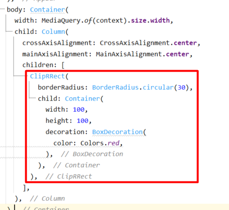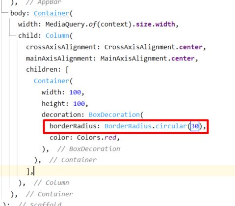 borderRadius: BorderRadius.circular(30)을 넣어 보고 결과를 보도록 한다.