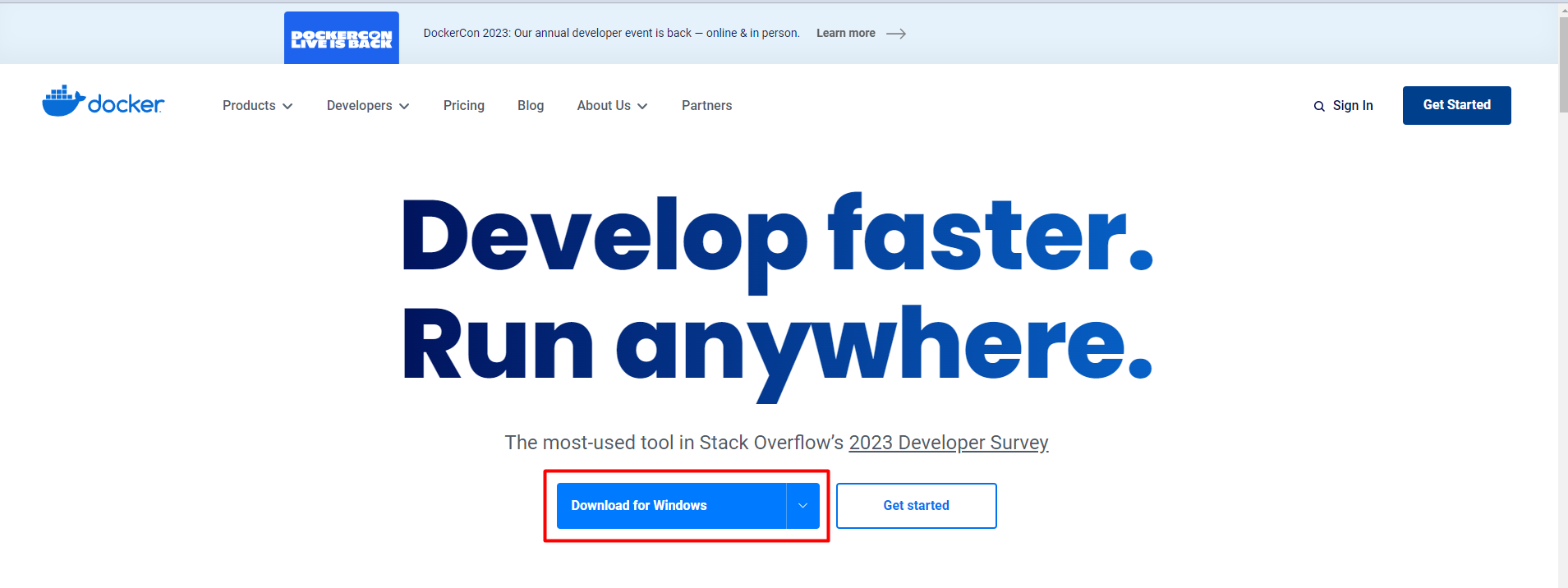 OS가 Windows인 경우 Download for Windows 클릭한다.