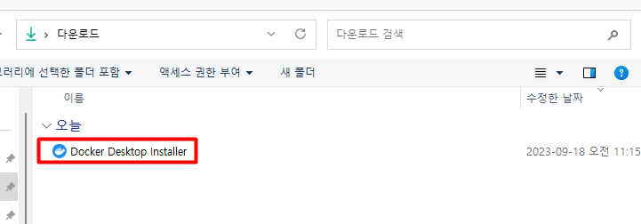 다운로드가 완료되면, 다운로드 폴더 안에 Docker Desktop installer가 다운로드되어있는 것을 확인할 수 있다