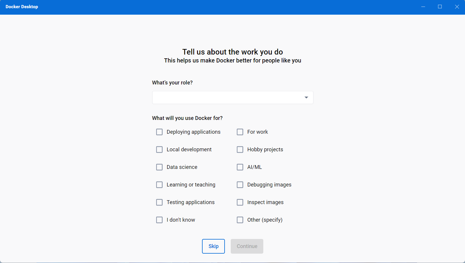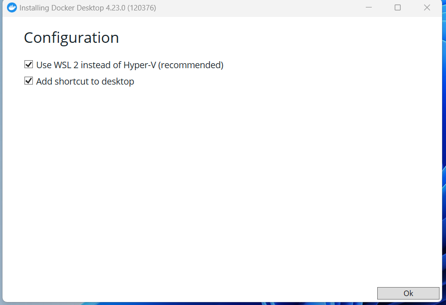 두 번째는 Docker desktop을 추가할 거냐 안 할 거냐 물어보는 것인 듯하다