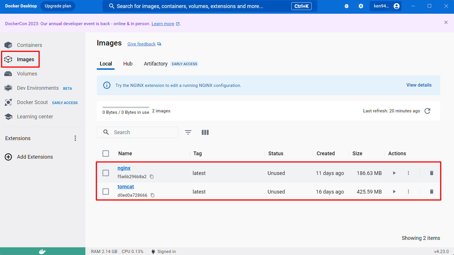 Docker desktop에서 Images를 확인해 보면, 위와 같이 이미지들이 있는 것이다