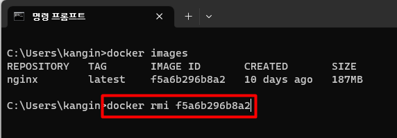 docker rmi는 이미지를 삭제하는 것이다 docker rm과 docker rmi이 닮았으니 주의하도록 한다