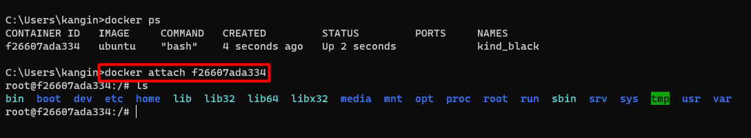 이 명령어도 컨테이너에 접근하는 명령어이다