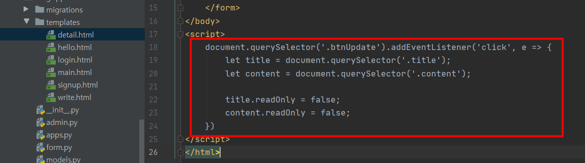 결론은 클릭했을때 title과 content의 readOnly를 푼다 이말이다