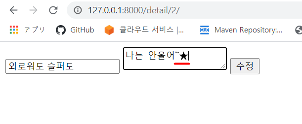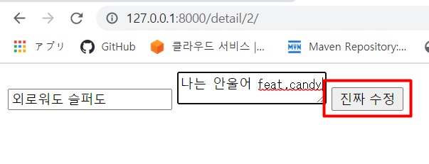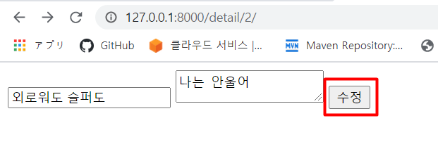 자 이제 브라우저에서 수정버튼을 눌러보자!