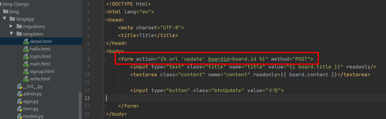 <form action="{% url 'update' boardid=board.id %}" method="POST">