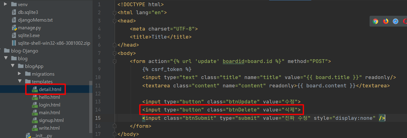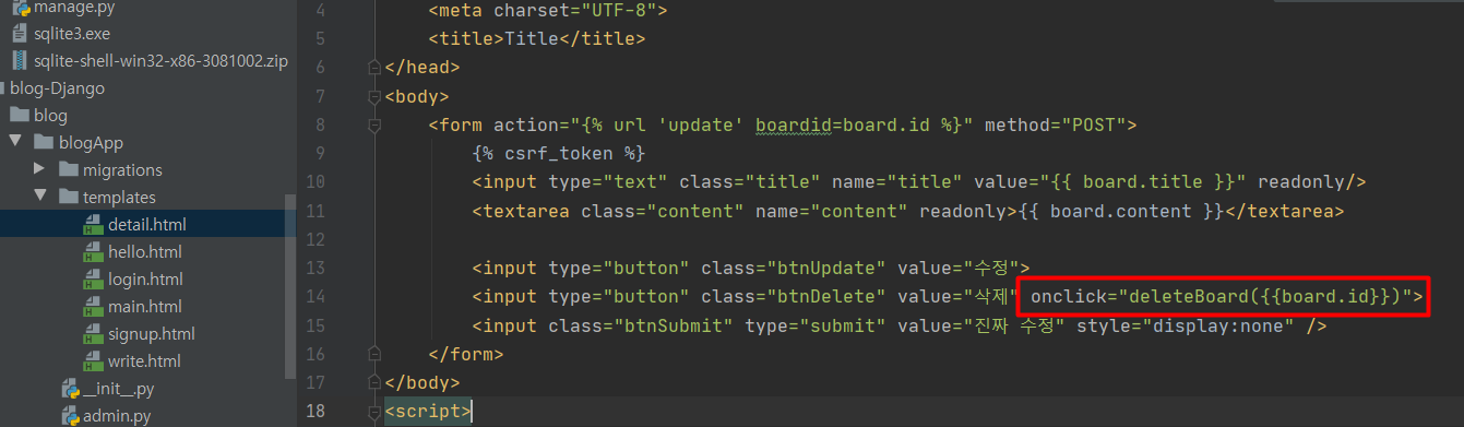 11강에서는 Django의 간단하게 게시판의 삭제기능을 만들도록 하겠다