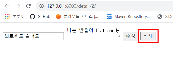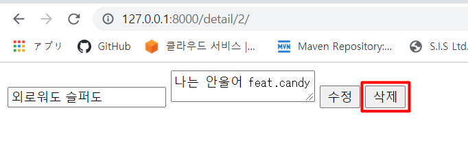 【삭제】 버튼이 없으니 만들어주도록 하자!