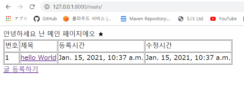 | 9강) Django 게시판 상세조회하기 ( Read ) (0) | 2021.01.16 |