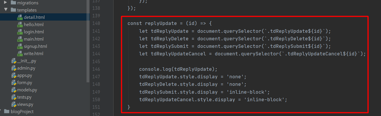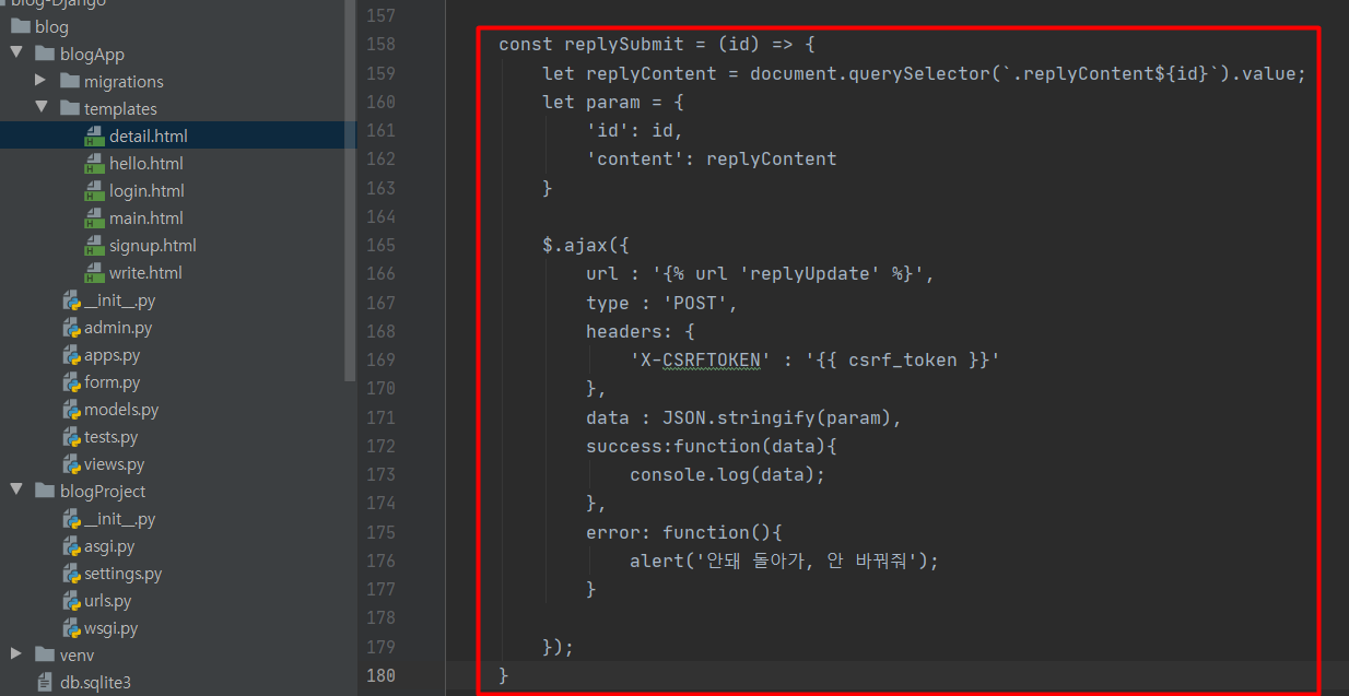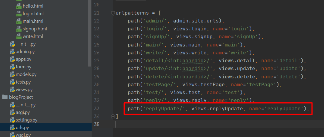 그다음 views.py에서 replyUpdate라는 함수를 작성하자
