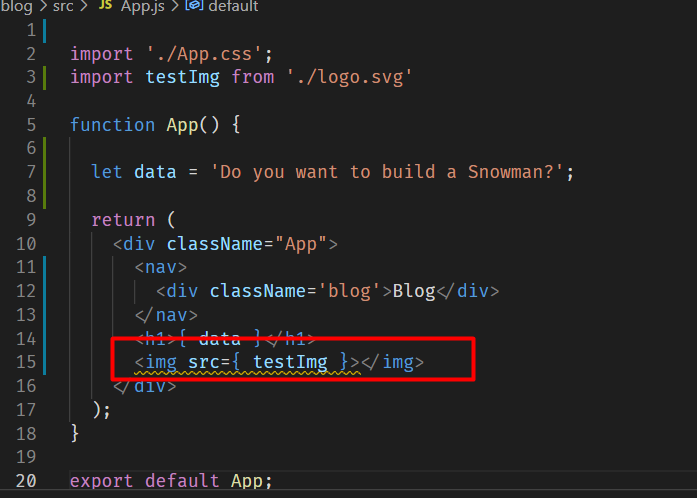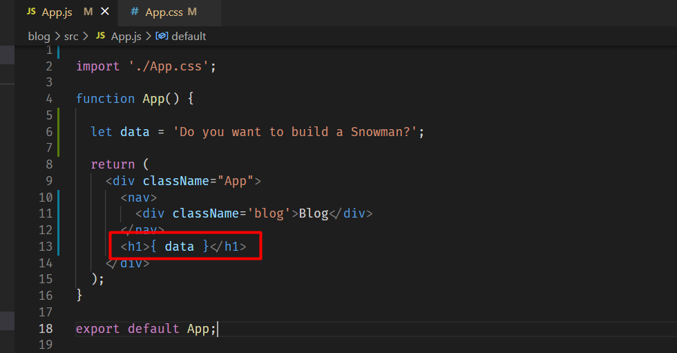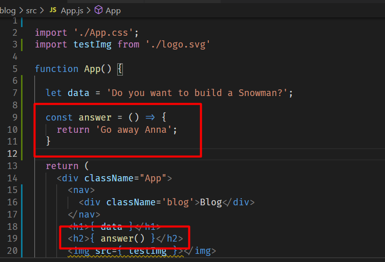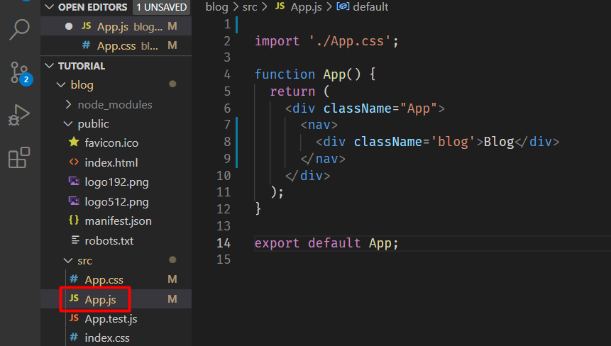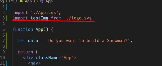 App.js에서 import 해서 변수 같은 것을 지정해주고 from으로 으디 출신인지 적어준다