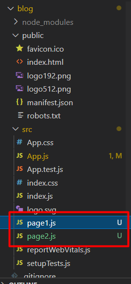 이렇게 page1.js 와 page 2.js를 만들어 준다 (앞글자는 대문자로 하자..)