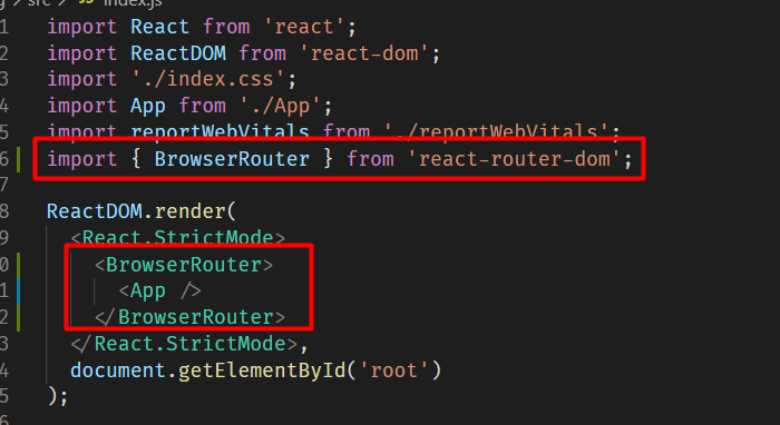 아까 설치한 react-router-dom을 import 해준다
