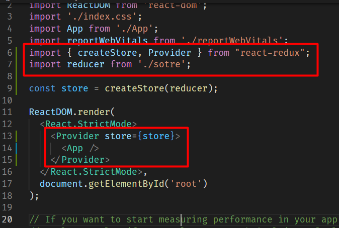 HTML 코드에는 Provider로 App을 감싸서, 모든 컴포넌트가 store를 이용하도록 넘겨준다
