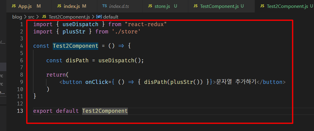 plusStr이 실행이 되면 reducer에서 PLUS case를 탈 것이고 문자열이 추가가 될 거라고 생각한다