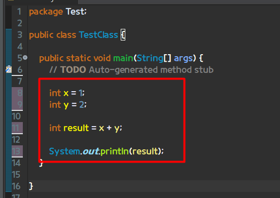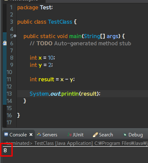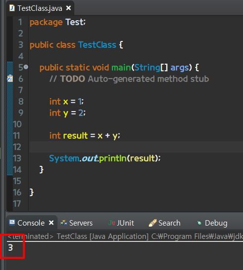 이렇게, 변수에 각 숫자를 넣고, 더한 값을 다시 변수에 넣고 출력하도록 코드를 작성하였다