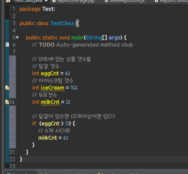 달걀이 있으면 : egg > 0 (달걀이 0개 이상은 있다는 것)