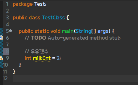 남편이 퇴근을 하고, 우유를 2개 사기로 하였다.