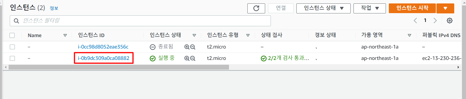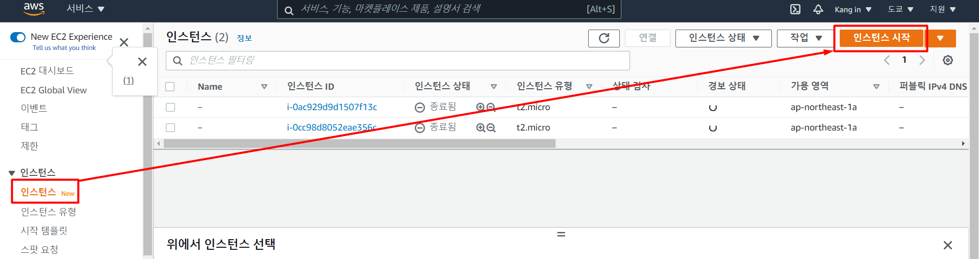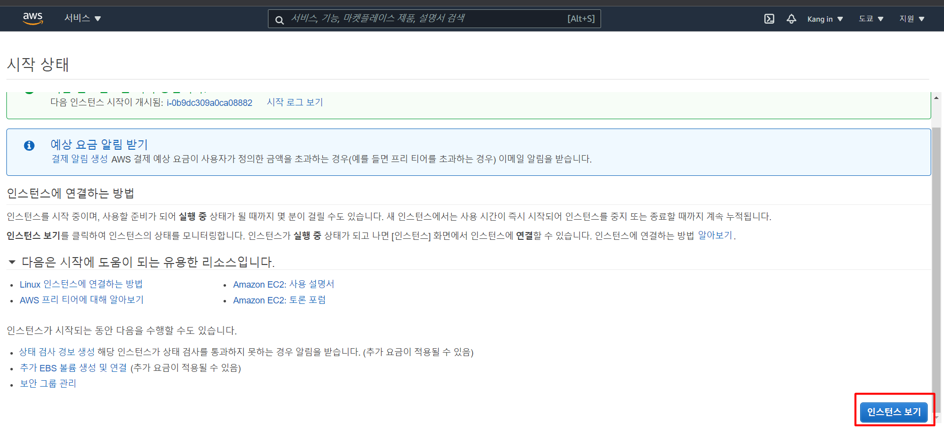 【인스턴스】→【인스턴스 시작】