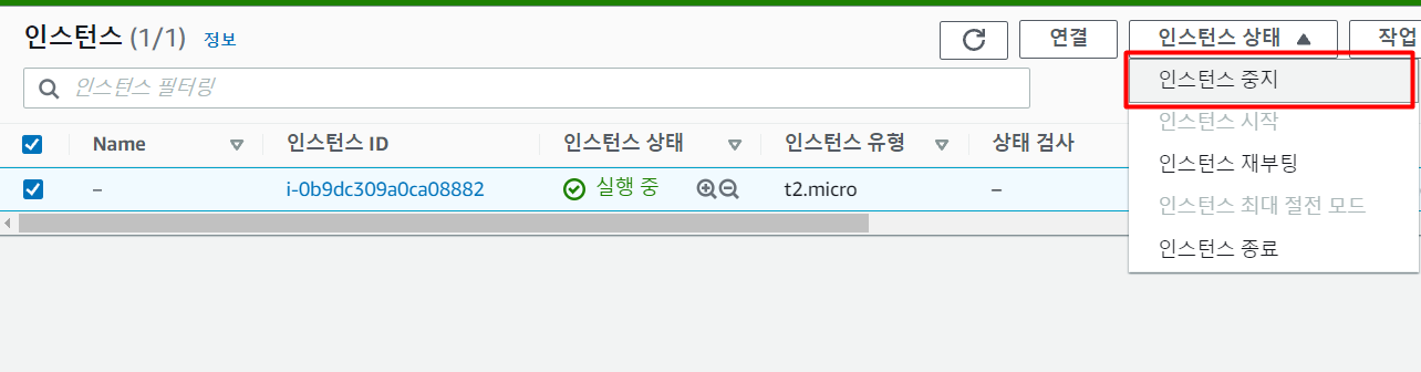 그러므로 서비스 할 것이 아니라면 인스턴스를 중지하도록 한다