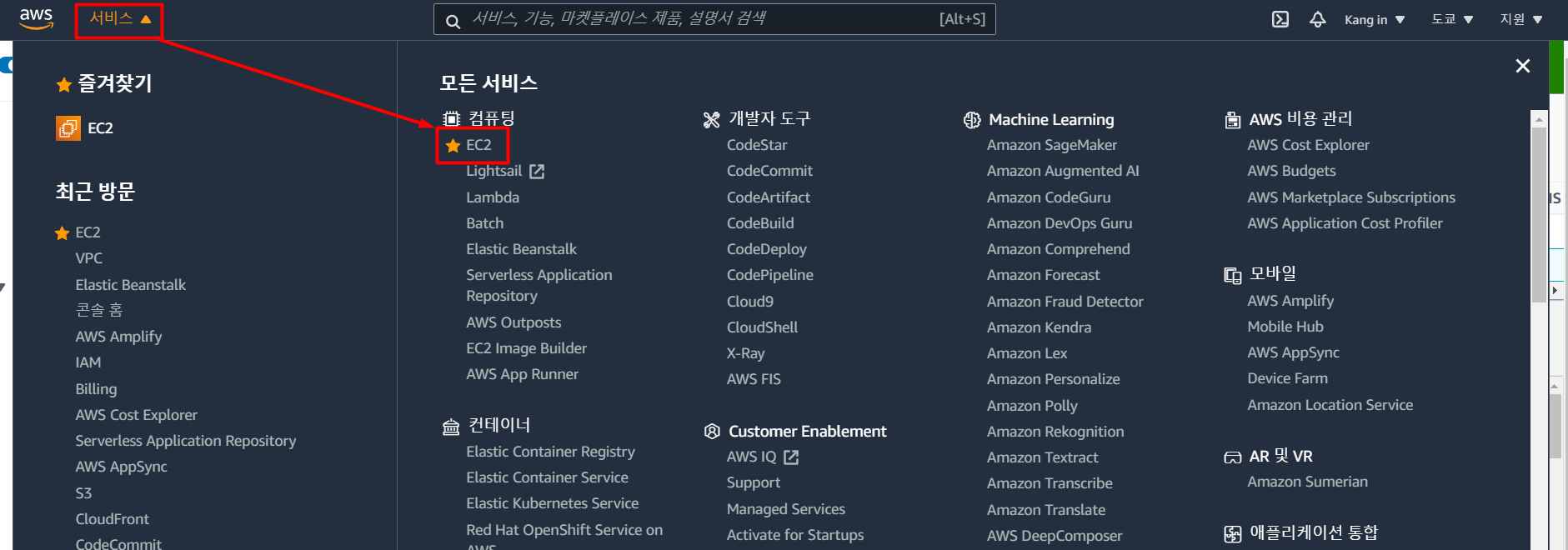 【서비스】→【EC2】