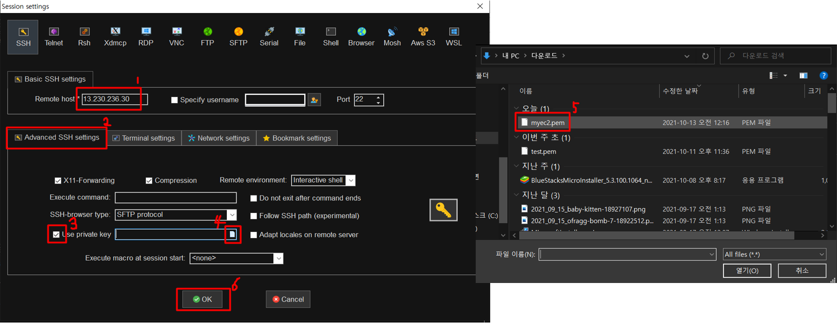 ③Use private key : 키 페어를 사용하기 위해 Check 한다