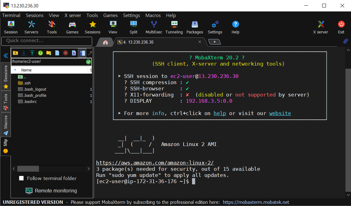 내 인스턴스에 접근이 되었고, login을 한다