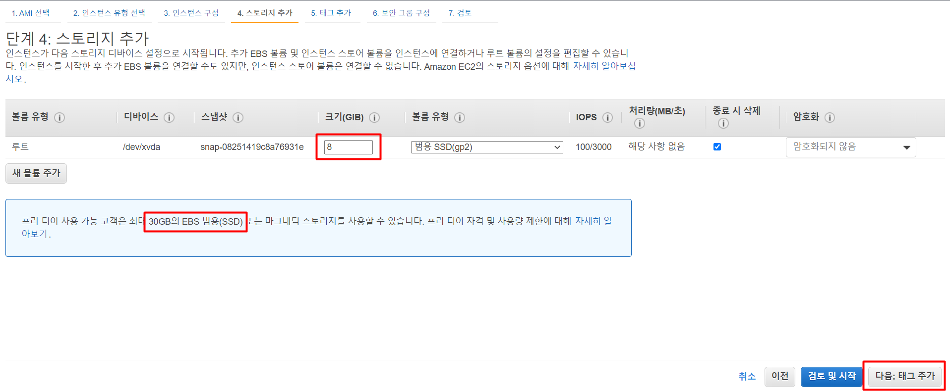 서버 구축만 할 예정이기 때문에 가만히 나 두고 【다음:태그 추가】 를 클릭하도록 하겠다