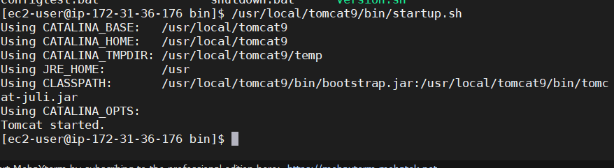다운로드했던 tomcat파일 안에 bin라는 폴더가 있고 그 안에 여러 파일들이 있는데 【startup.sh】라는 파일을 실행시키면 tomcat server가 구동된다