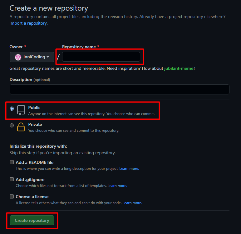 누구나 볼 수 있는, Public에 체크하고 【Create repository】를 클릭한다